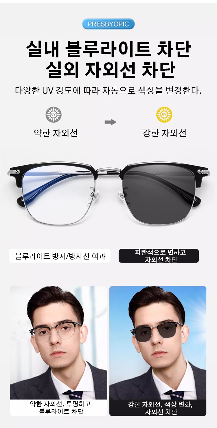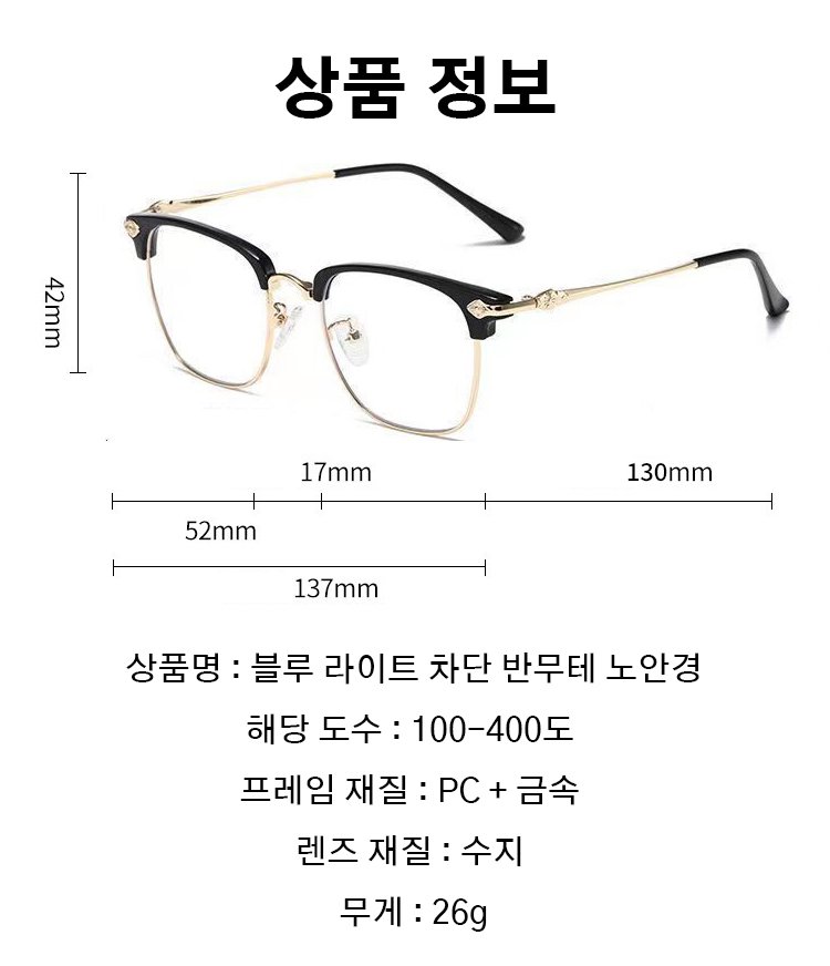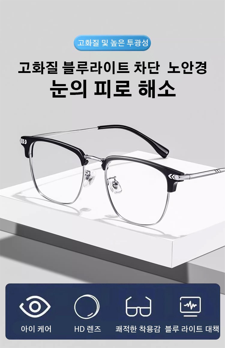 블루 라이트 차단 반무테 노안경